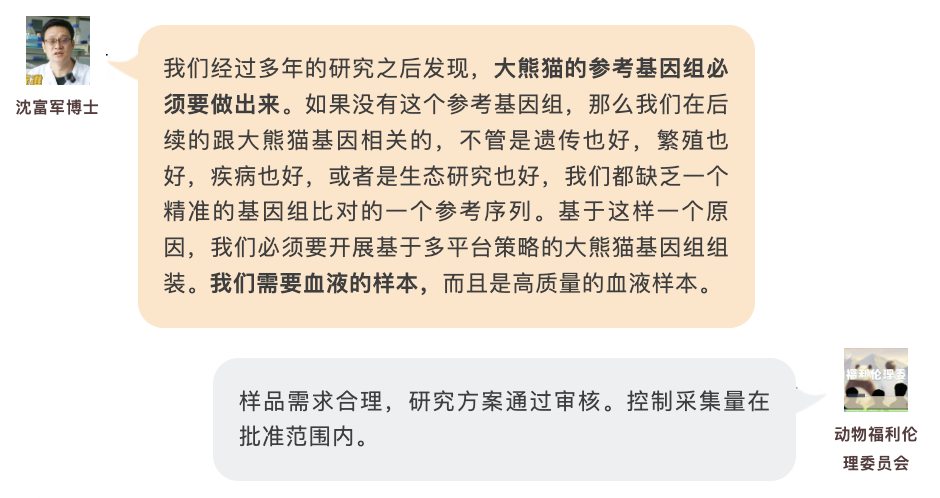 在科研中,任何涉及大熊猫的样品——无论是视频、图像、行为记录,还是粪便、血液、尿液等,都必须通过福利伦理委员会的审核。根据研究的实际需要,委员会会决定采用快速审查还是一般审查。比如,在激素研究中,使用粪便样品就能满足研究需求,因此不需要采血。但在基因组测序研究中,为了获得精准的基因组参考序列,就必须使用血液样本。这类情况在委员会严格评估后,也会获得批准。通过这样的审核机制,委员会确保实验既能保障动物福利,又能满足科学需要。