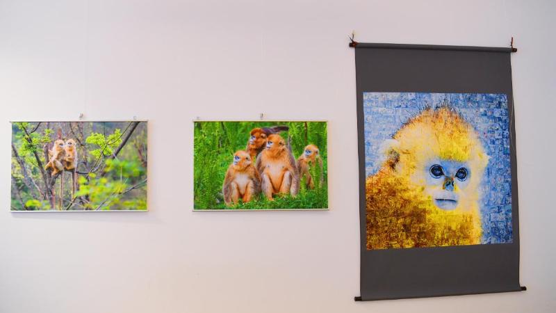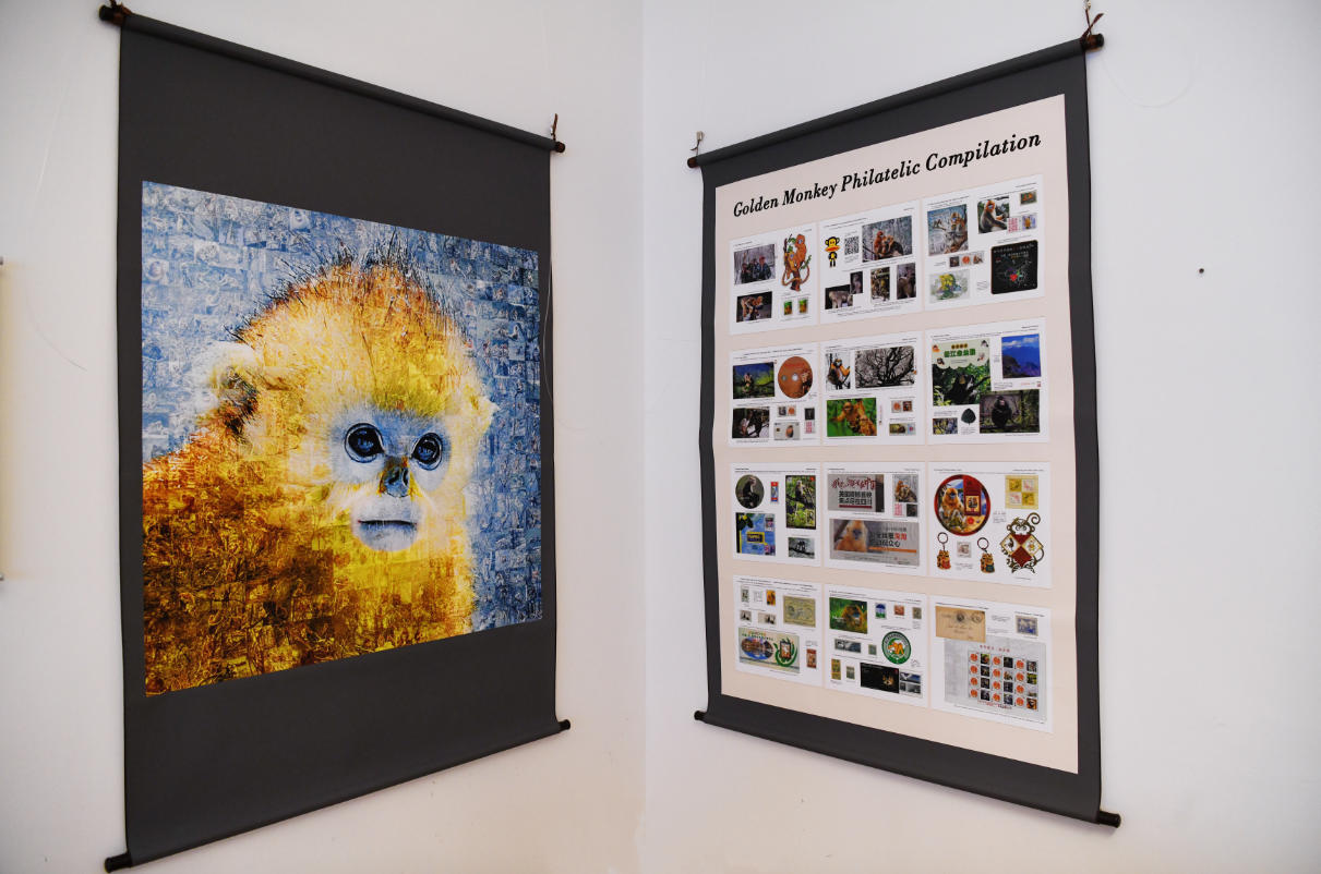 现场展出的《中华精灵·百猴图》与金丝猴邮集